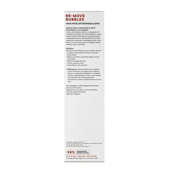 Además, Re-Move Bubbles, con un 98% de ingredientes de origen natural, consigue en unos minutos limpiar en profundidad tu piel, eliminando todas sus impurezas gracias a las cápsulas de aceite desmaquillante retenidas en sus burbujas transparentes.