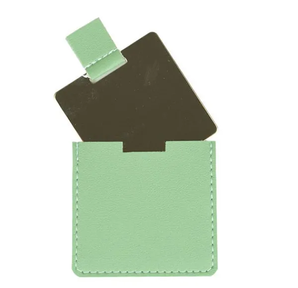 Espejo cuadrado con funda de piel sintética.