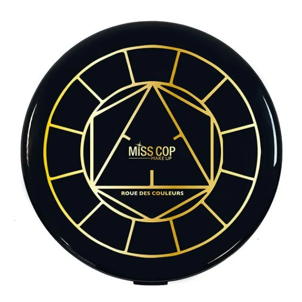 La paleta profesional «roue des couleurs» con sus diferentes compartimentos, su panel de colores, texturas para rostro, ojos y labios.