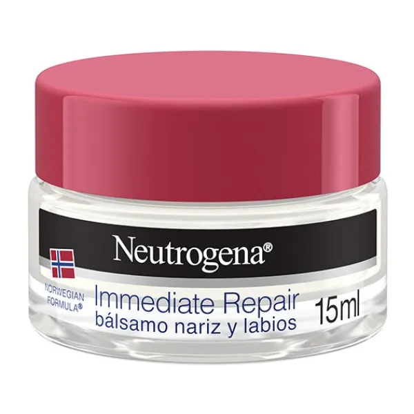 Neutrogena® Bálsamo Reparación Inmediata Nariz y Labios es un bálsamo calmante de rápida absorción no deja residuos blancos ni sensación pegajosa
