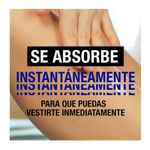Esta crema se funde con la piel para que puedas vestirte inmediatamente e hidrata intensamente durante 72 h.