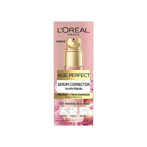 Descubre el secreto de una piel radiante y sin manchas con el revolucionario Age Perfect Serum Corrector Acción Rápida Anti-Manchas. Este sérum avanzado de L’Oréal Paris, potenciado por la fusión de dos ingredientes poderosos: las células nativas de peonía y la niacinamida, ha sido diseñado específicamente para pieles maduras y se puede aplicar en el rostro, cuello y manos.