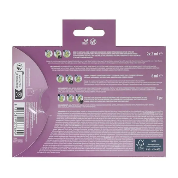 Disfruta de una deliciosa mascarilla facial que le da a tu piel un impulso calmante. Mientras tanto, dale a tus labios un tratamiento hidratante con la Lip Mask. Y devuelve el brillo a tus ojos con la máscara para los ojos y la máscara debajo de los ojos.