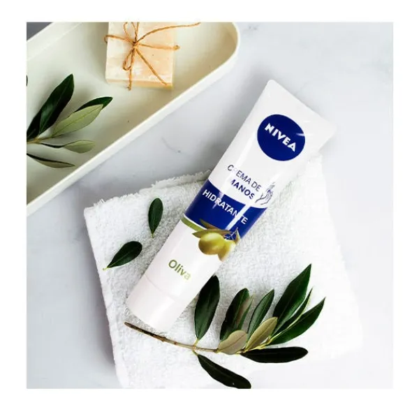 NIVEA Crema de Manos Hidratante con Aceite de Oliva es una crema hidratante esencial para el cuidado de la piel seca de las manos. Enriquecida con Aceite de Oliva, conocido por sus extraordinarias propiedades emolientes, es una fórmula adecuada para el uso diario capaz de devolver toda la suavidad a las manos secas y mantenerlas hidratadas durante 24 horas. Un cuidado esencial que gracias a su fórmula ultraligera se absorbe rápidamente y no deja sensación grasa o pegajosa en la piel de las manos.