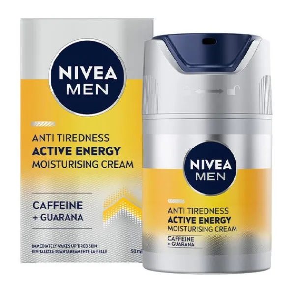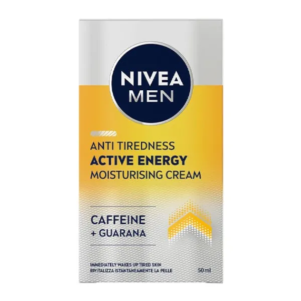 Enriquecida con cafeína de origen 100% natural, la Crema Hidratante NIVEA MEN SKIN ENERGY hidrata y refresca al instante la piel masculina, combate los signos de cansancio revitalizándola de forma duradera, y mejora el estado de la piel para poder mostrar un aspecto sano y lleno de energía. Una crema hidratante especialmente desarrollada para revitalizar la piel cansada del hombre. Fórmula dermatológicamente comprobada. ¿Piel cansada? Que no se te note. Piel llena de vida de forma duradera con NIVEA MEN SKIN ENERGY Crema Hidratante.
