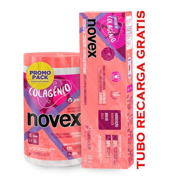 La Mascarilla Novex Infusión de Colágeno contiene Colágeno 100% vegetal y está indicada para cabellos finos, dañados y sin brillo, combatiendo la fragilidad del cabello.