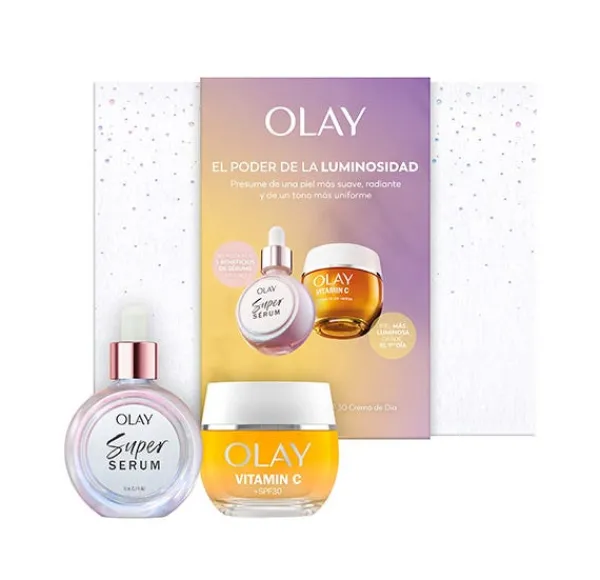 Con este pack de OLAY disfruta de la crema Vitamin C + SPF, que contiene vitamina C, un antioxidante de eficacia probada conocido por combatir los daños de los radicales libres, y niacinamida, capaz de penetrar hasta 10 capas de la superficie de la piel para ayudar a activar su renovación celular.