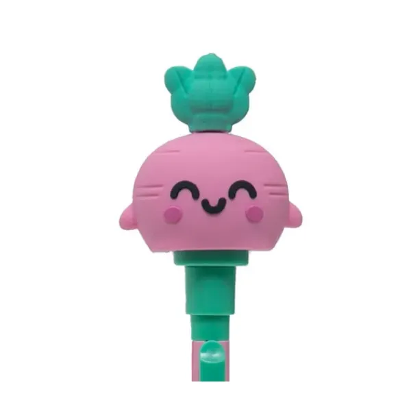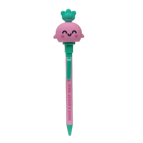 – Bolígrafo realizado en plástico, con nuestra remolacha Mr. Wonderful en su extremo, que sube y baja al abrir y cerrar el boli.