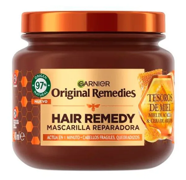 Garnier Original Remedies Mascarilla reparadora Hair Remedy Tesoros de Miel con miel de acacia y cera de abejas para pelo frágil y quebradizo que nutre y repara en profundidad, dejando el pelo naturalmente más bonito.