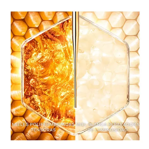 Formulado con un 96% de ingredientes derivados de la naturaleza*. Una mezcla de 5 tesoros de la abeja: la miel pura de la abeja negra de la isla de Ouessant (Bretaña, Francia), la rica miel de Córcega (Francia), la legendaria miel de la isla de Icaria (Grecia), la rara miel del archipiélago de Aland (Finlandia) y una exclusiva jalea real francesa.