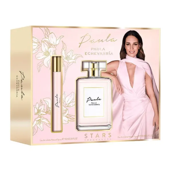 Estuche Paula La primera fragancia especialmente diseñada por la actriz Paula Echevarría. Es una fragancia suave para mujeres femeninas y elegantes. Viene en un frasco de 100 ml y un vial spray de 10 ml.
