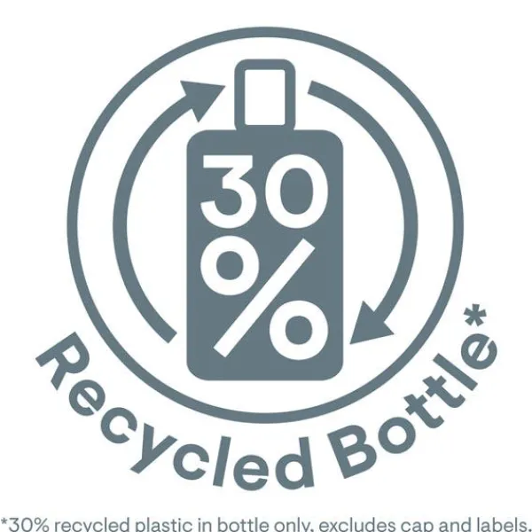 En una botella que contiene un 30% de plástico reciclado, excluye la tapa y la etiqueta.