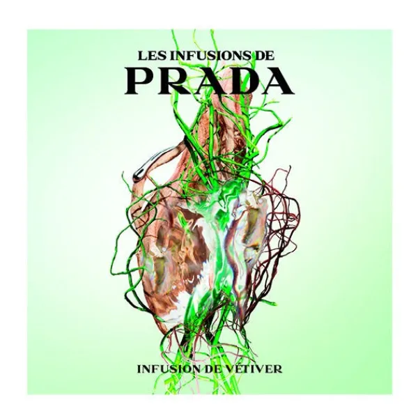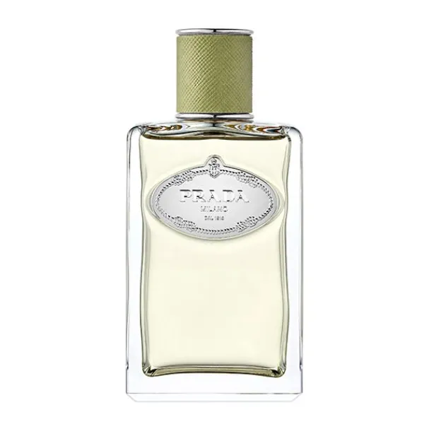 El frasco de perfume Infusion de Vetiver encarna la quinta esencia de los códigos de Prada: vintage y sofisticado con un toque de fantasía gracias al tapón de color verde fuerte que hace referencia al ingrediente estrella.