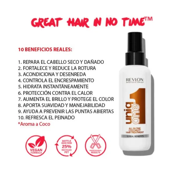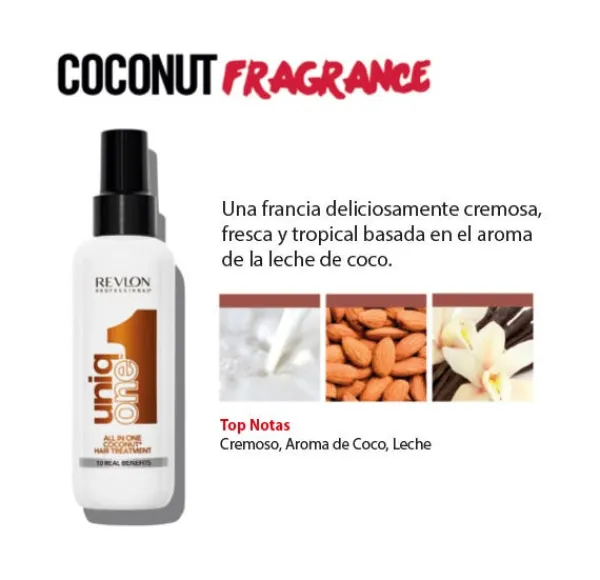 Este tratamiento repara el cabello con signos de sequedad, aporta un extra de brillo y controla el encrespamiento, cuenta con filtros de protección UV para mantener el color, ofrece suavidad absoluta, protección térmica, facilita el cepillado y el uso de planchas y tenacillas. Desenreda el cabello, repara y previene las puntas abiertas y nos brinda cuerpo y volumen. Además, su fórmula ha sido aromatizada con una cálida y sensual fragancia de leche de coco, que nos sumerge en una experiencia sensorial única e irrepetible.