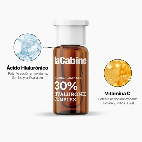 ✓ Tratamiento de shock. Complejo al 30% de Hialurónicos y Vitamina C, para la máxima concentración de activos en un tratamiento.