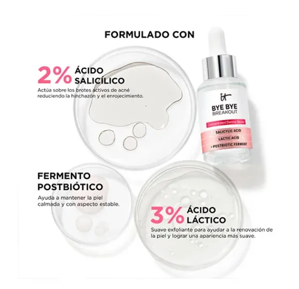 Es hora de decir bye bye al acné con Bye Bye Breakout Serum, el serum antiacné que actúa sobre las imperfecciones y corrije y previene las marcas para una piel suave y saludable.