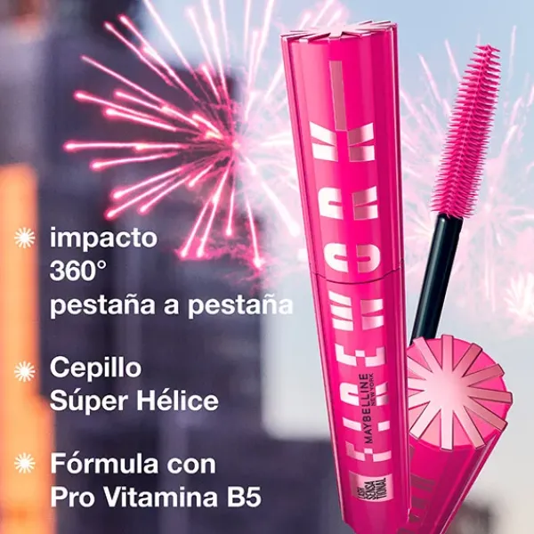 La máscara Lash Sensational Firework de Maybelline New York permite cargar las pestañas de la raíz a las puntas, sin apelmazarlas y sin grumos.