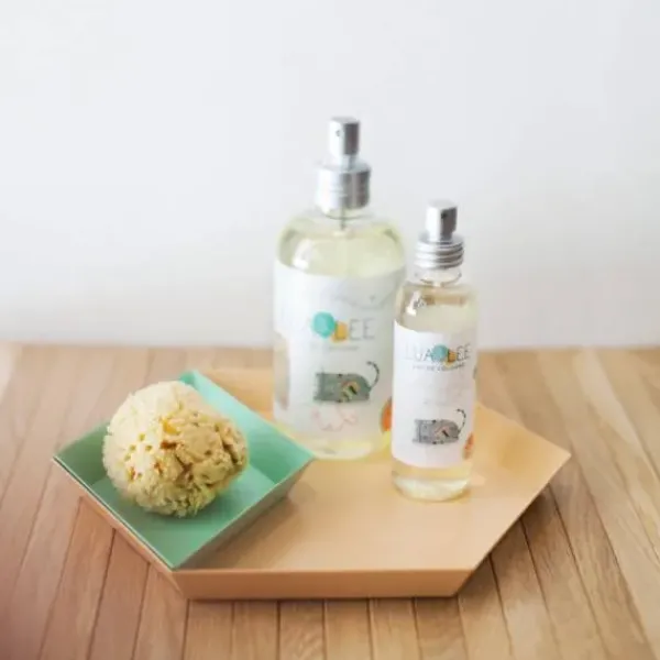 El componente principal de la colonia Lua & Lee es agua de naranja bio. Con propiedades calmantes y relajantes.