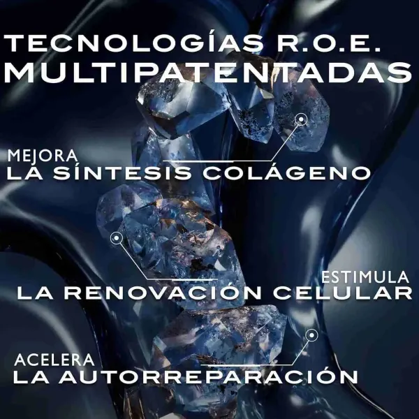 Este sérum facial, que combate 8 daños causados por el fotoenvejecimiento*, está enriquecido con tecnologías R.O.E. multipatentadas. El Retinol Liposomal Catiónico (R) ayuda a potenciar la producción natural de colágeno de la piel, el Oxígeno en Matriz (O) ayuda a renovar las células de la piel, y las Enzimas Liposomales Dobles Reparadoras de la Piel (E) ayudan a reparar los daños de origen múltiple en el núcleo de las células y aceleran la capacidad de autorreparación de la piel. Para reforzar aún más la barrera cutánea y calmar la piel, este sérum incluye el potente VitE-Mega, niacinamida y prebióticos.