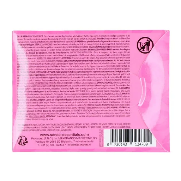Mascarilla hidratante de hidrogel para los labios con colágeno y extracto de pepino.