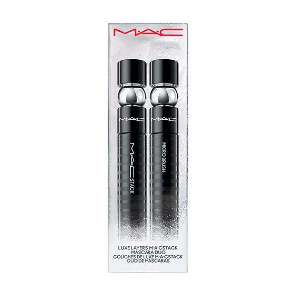Lleva tus pestañas al infinito con este dúo de edición limitada de M·A·CStack Mascara y M·A·CStack Micro Mini listo para regalar en un packaging cromado brillante y blanco nieve exclusivo para las fiestas.