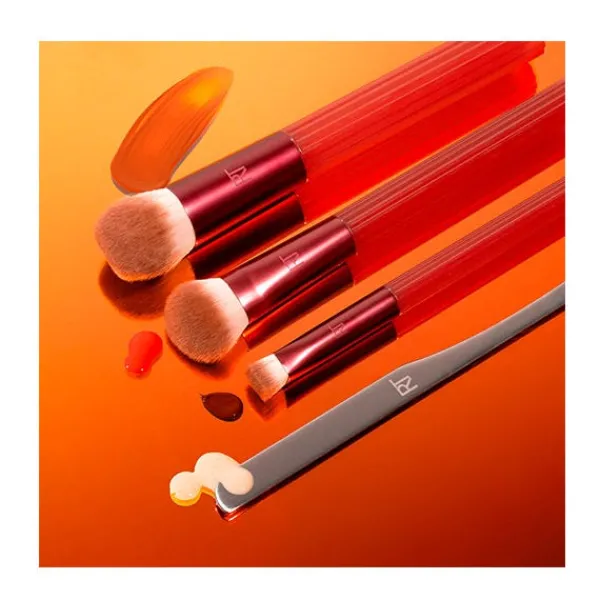 Set Golden Hour Glow de 3 brochas densas para el rostro y una espátula de maquillaje para ocultar, cubrir e iluminar, logrando así tu look perfecto