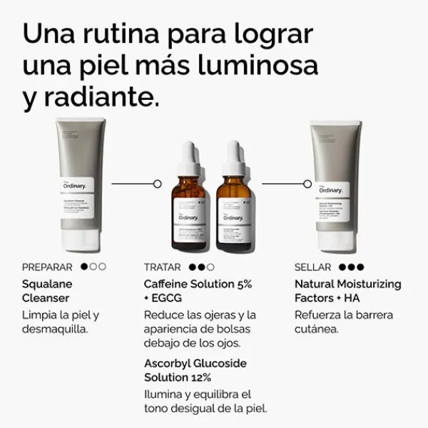 Reduce la pigmentación y la hinchazón en la zona del contorno de ojos. Es una fórmula muy ligera que contiene un 5% de cafeína, complementada con glucósido de galato de epigalocatequina (EGG) extraído de hojas de té verde.