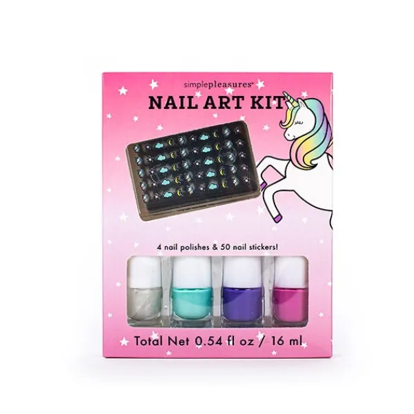 Kit para decoración de uñas que incluye 4 esmaltes con colores muy veraniegos y sticks de uñas para hacer de tu manicura una obra de arte.