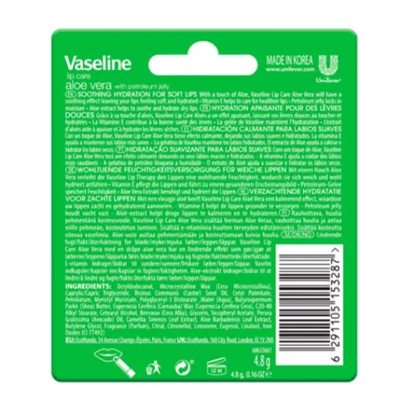 Bálsamo labial con Aloe Vera tiene un efecto calmante que deja tus labios suaves e hidratados.