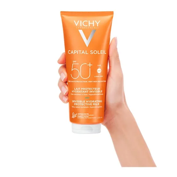 Para aquellos que adoran pasar los días de verano a la orilla del mar, la primera leche solar de Vichy que protege la piel frente a varios factores de la playa: arena, sol, cloro y viento.