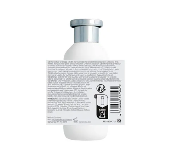 Este champú de Wella Professionals está formulado con antioxidantes adicionales que mejoran la protección frente a los radicales libres, garantizando la calidad del cabello teñido en tres áreas que son especialmente importantes para el cabello coloreado: protección del color, brillo intenso y resistencia del cabello.