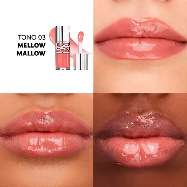 Su fórmula con ácido hialurónico, cubre y nutre tus labios para un equilibrio perfecto entre cuidado y color, con tonos brillantes que destacan la máxima intensidad del brillo YSL Loveshine.