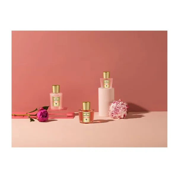 Los acentos vibrantes de la pimienta negra, junto con las notas suaves de la frambuesa, marcan la apertura de este refinado bouquet que revela en su intenso corazón florido las suntuosas notas de la Peonía, acompañadas por la luminosidad del geranio.