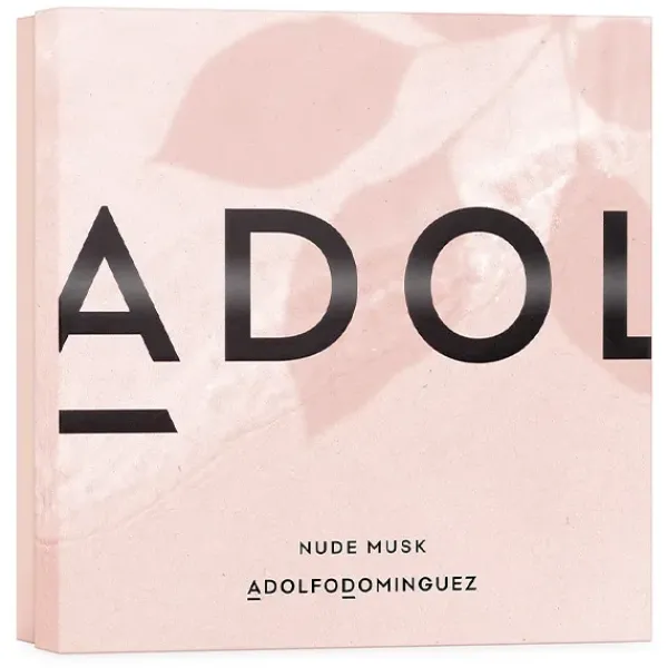El estuche de regalo Nude Musk de Adolfo Domínguez para mujer se compone de Eau de Parfum (perfume de 120 ml + 10 ml) y crema de manos.
