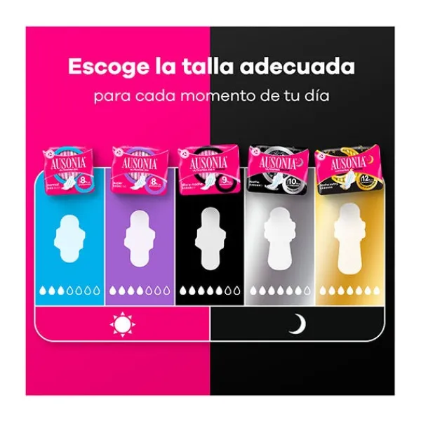 Ausonia Ultrafina Noche Extra están diseñadas para protegerte hasta 12 horas; así no tendrás que despertarte en medio de la noche para comprobar si has manchado o para cambiarte de compresa.
