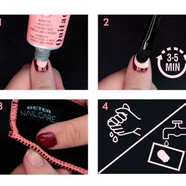 Quitaesmalte en crema con una fórmula innovadora que elimina el esmalte convencional y nutre las uñas y las cutículas.