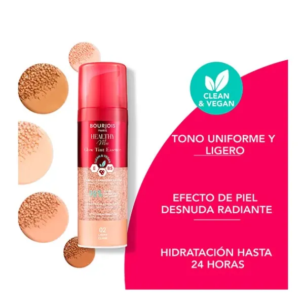 Desafía la opacidad y redescubre la luminosidad natural de tu piel con Bourjois Healthy Mix Glow Tint Essence. Esta revolucionaria fórmula combina la tecnología de pigmentos encapsulados con una mezcla de arándano con vitaminas para revitalizar tu cutis y potenciar su brillo natural. La base ligera proporciona una cobertura suave que minimiza la apariencia de los poros, reduce el enrojecimiento y crea un efecto de filtro luminoso, dejando la piel fresca y radiante.