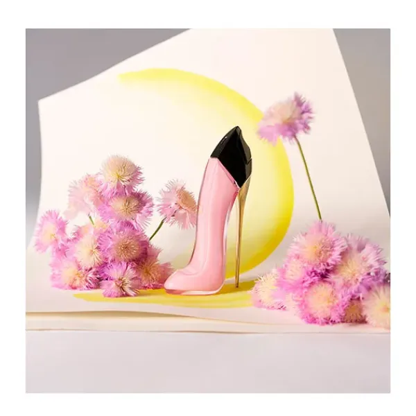 Good Girl Blush es una explosión de contrastes fresca y floral que da paso a una expresión empolvada de feminidad con una doble dosis de vainilla e ylang ylang, presentada en un frasco con forma de stiletto en delicado rosa pastel.