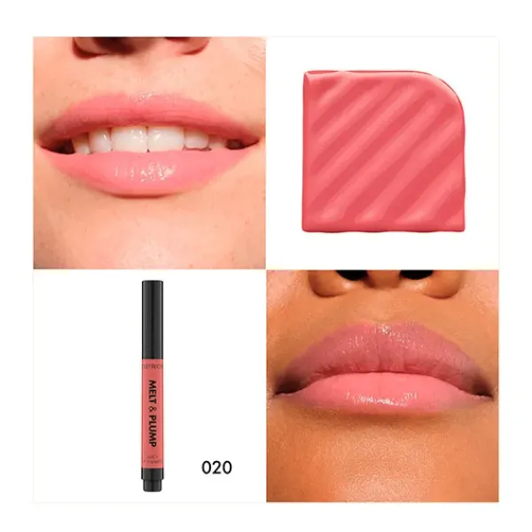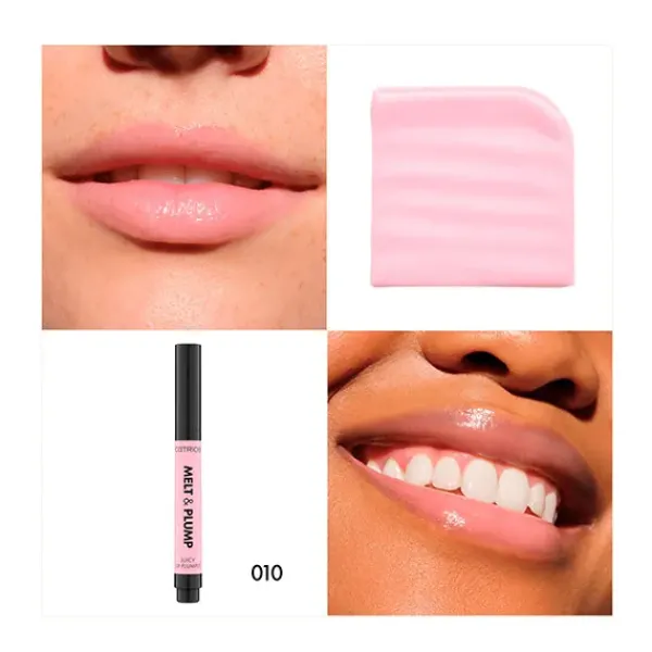 Volumen con solo unos clics: el voluminizador Melt & Plump Juicy Lip Plumper 010 More Amore de Catrice proporciona un tono rosa suave al instante, así como brillo y volumen. Su textura suave se desliza fácilmente sobre los labios y deja un agradable efecto refrescante gracias al mentol. Enriquecido con Maxi-Lip™, la fórmula hidrata y proporciona volumen a los labios para conseguir un acabado impresionante en un instante.