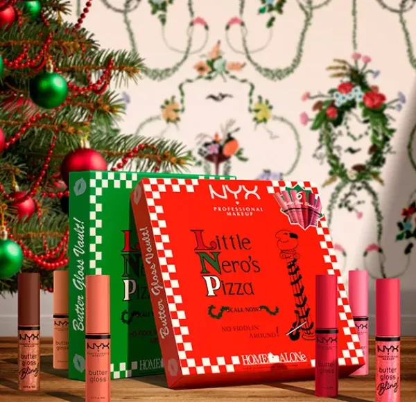 Set Butter Gloss en Caja de Pizza de Home Alone – NYX Professional Makeup es el regalo navideño perfecto que trae seis brillantes tonos rosados.