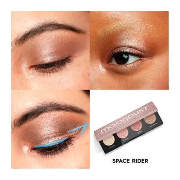 El Space Rider Quad, que incluye cuatro de las icónicas sombras cósmicas Moondust de Urban Decay, presenta una selección de brillos de otro mundo.