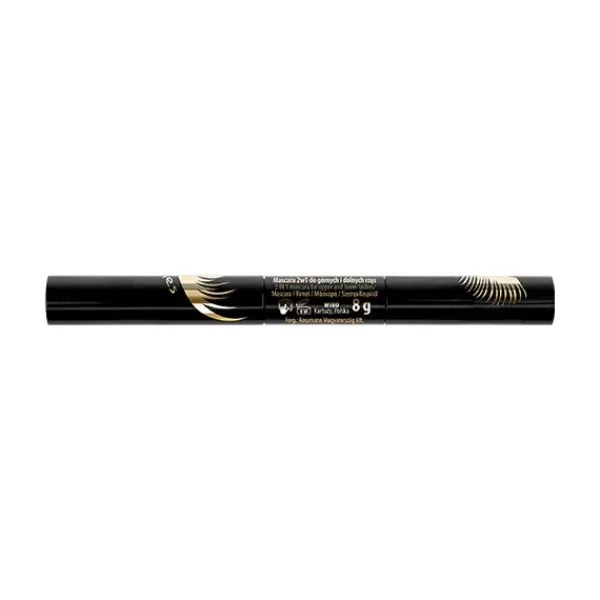 Una máscara 2en1 con el dúo de cepillos para las pestañas superiores e inferiores. El cepillo más grande cubrirá perfectamente las pestañas ya desde la primera aplicación, aportando forma y volumen. El cepillo de tamaño menor, con su perfil adaptado a las pestañas inferiores, las acentuará y separará perfectamente. Gracias a la cremosa textura, el rímel cubre cuidadosamente cada pestaña, se seca rápidamente y no se cae. Para un efecto dramatic look más acentuado, aplíquelo varias veces. El negro profundo hará las pestañas ópticamente más densas y realzará el marco de los ojos.