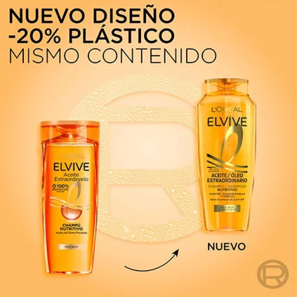 El Champú Aceite Extraordinario de Elvive transforma los cabellos secos llenándolos de vida, luciendo sublimes y brillantes. Su textura ligera enriquecida con seis aceites de flores preciosas* se funde en el cabello para una nutrición extraordinaria.