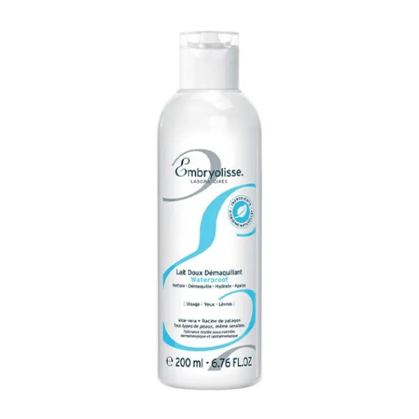 Embryolisse Leche Limpiadora al Agua 200 ml es una leche 4 en 1 que limpia, desmaquilla, hidrata y calma todo tipo de pieles, incluso las sensibles.