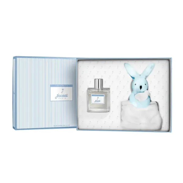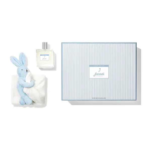 Esta icónica agua perfumada de Jacadi tiene un nuevo y adorable compañero: un dulce y suave conejito, ¡una pura delicia!