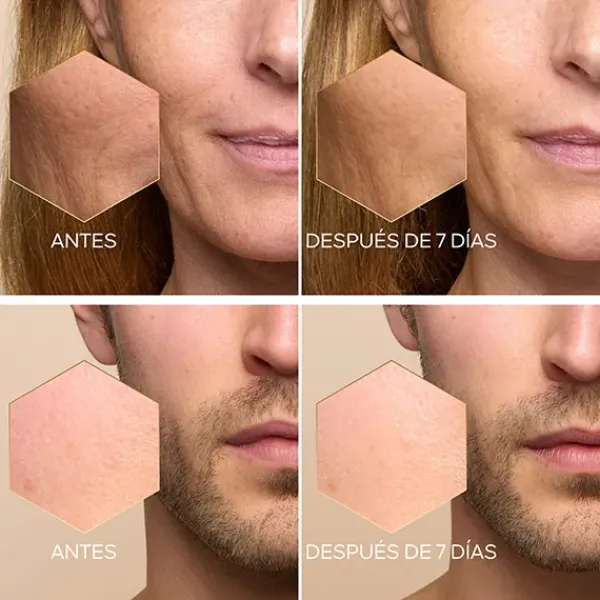Reparación profunda de los signos de la edad desde las primeras gotas¹. El Sérum Aceite Acuoso de Juventud combina 3 mieles reparadoras de abeja negra para potenciar los mecanismos de reparación de la piel. La piel está visiblemente más joven y las arrugas parecen rellenarse.