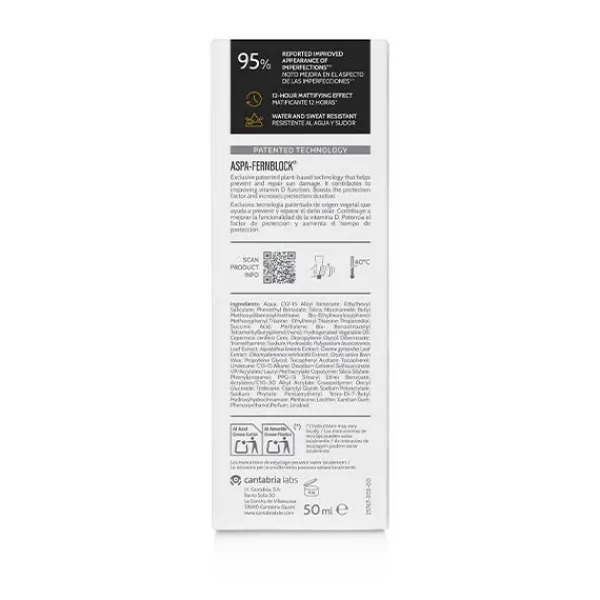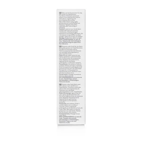 Fotoprotección especializada de amplio espectro (UVB, UVA, visible, infrarroja), SPF 50+, de uso diario para pieles grasas o con tendencia acneica.
