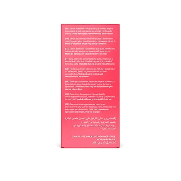 Sérum altamente concentrado que ayuda a mejorar la textura de la piel, suavizando las arrugas y unificando el tono.