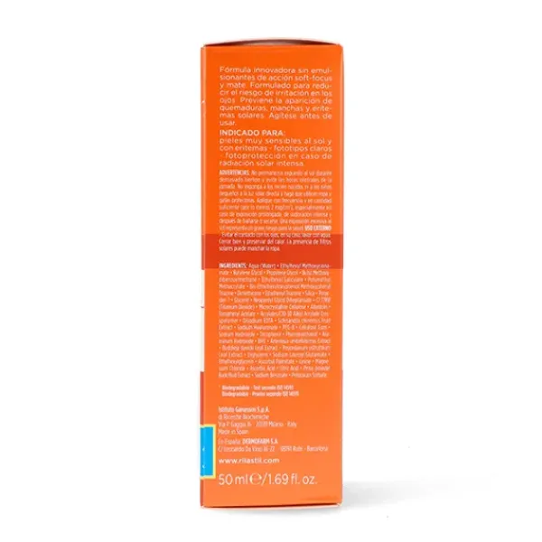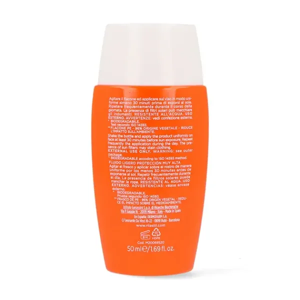 Fotoprotector facial ligero de base acuosa y acabado dry touch con más de 8h de hidratación. Textura ultraligera. Protege la piel de los rayos UVB y UVA, favoreciendo su elasticidad natural y dejándola suave y tersa. Se absorbe instantáneamente contrarrestando el brillo incluso bajo la luz del sol y con un acabado suave y mate perfecto. Excelente base de maquillaje. No contiene octrocrileno, no irrita los ojos.