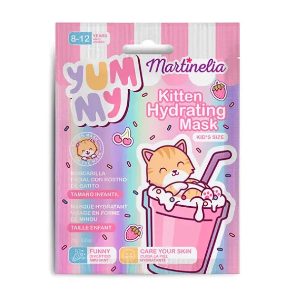 Mascarilla hidratante infantil con cara de gato. Indicada para niñ@s de 8 a 12 años. Monodosis.